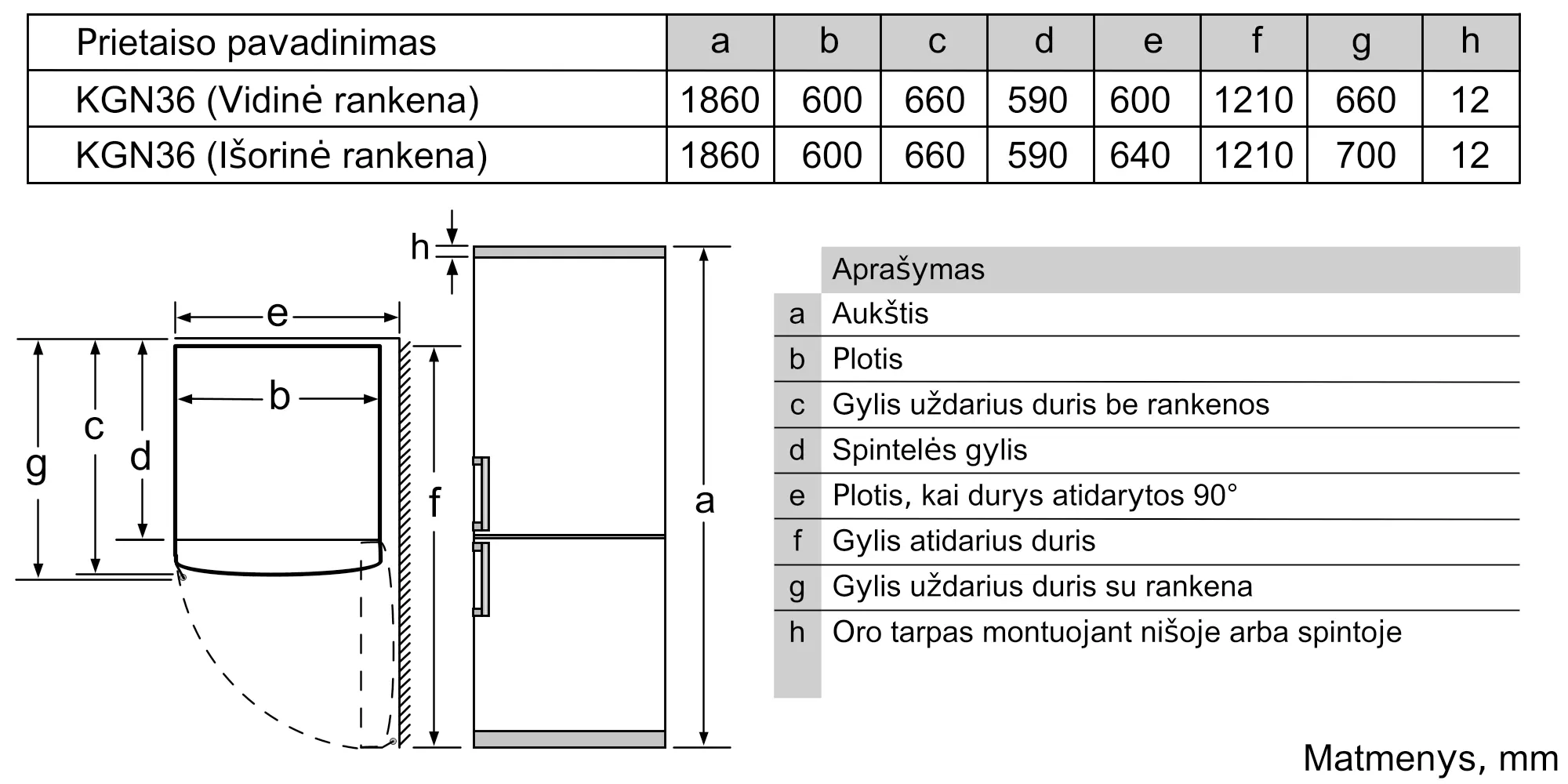 Gaminio išmatavimai