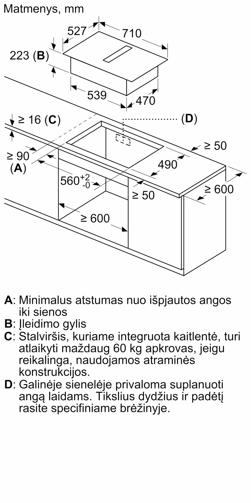 Gaminio išmatavimai