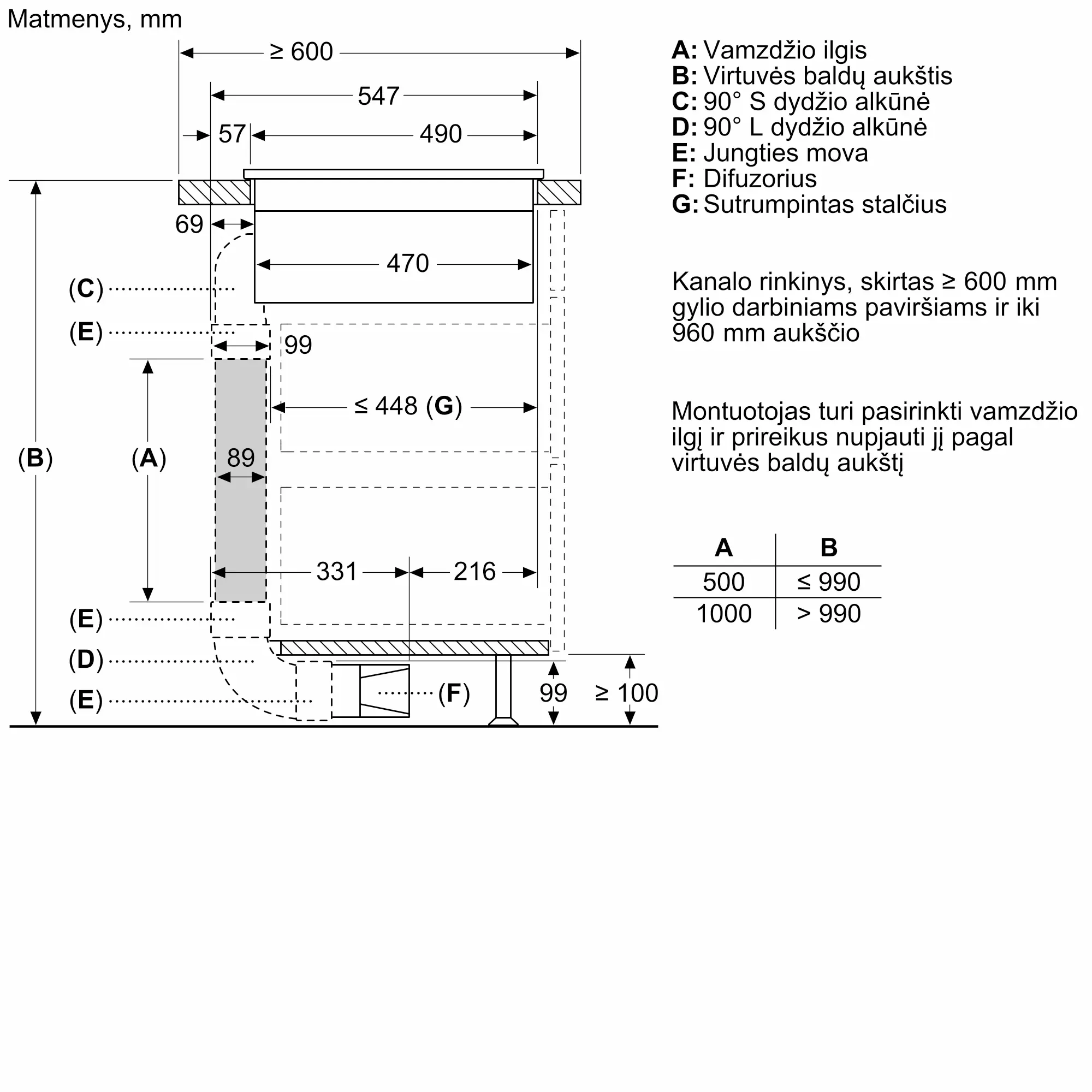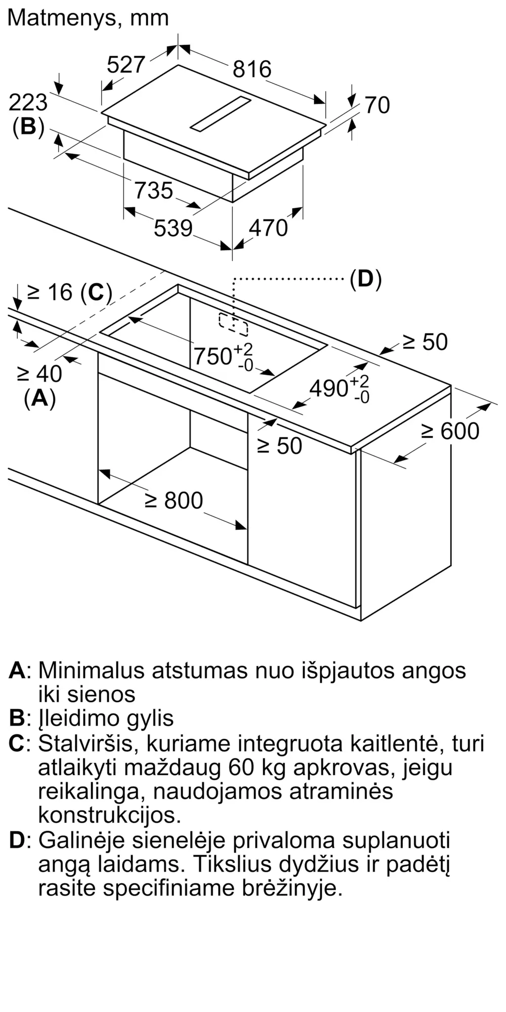 Gaminio išmatavimai