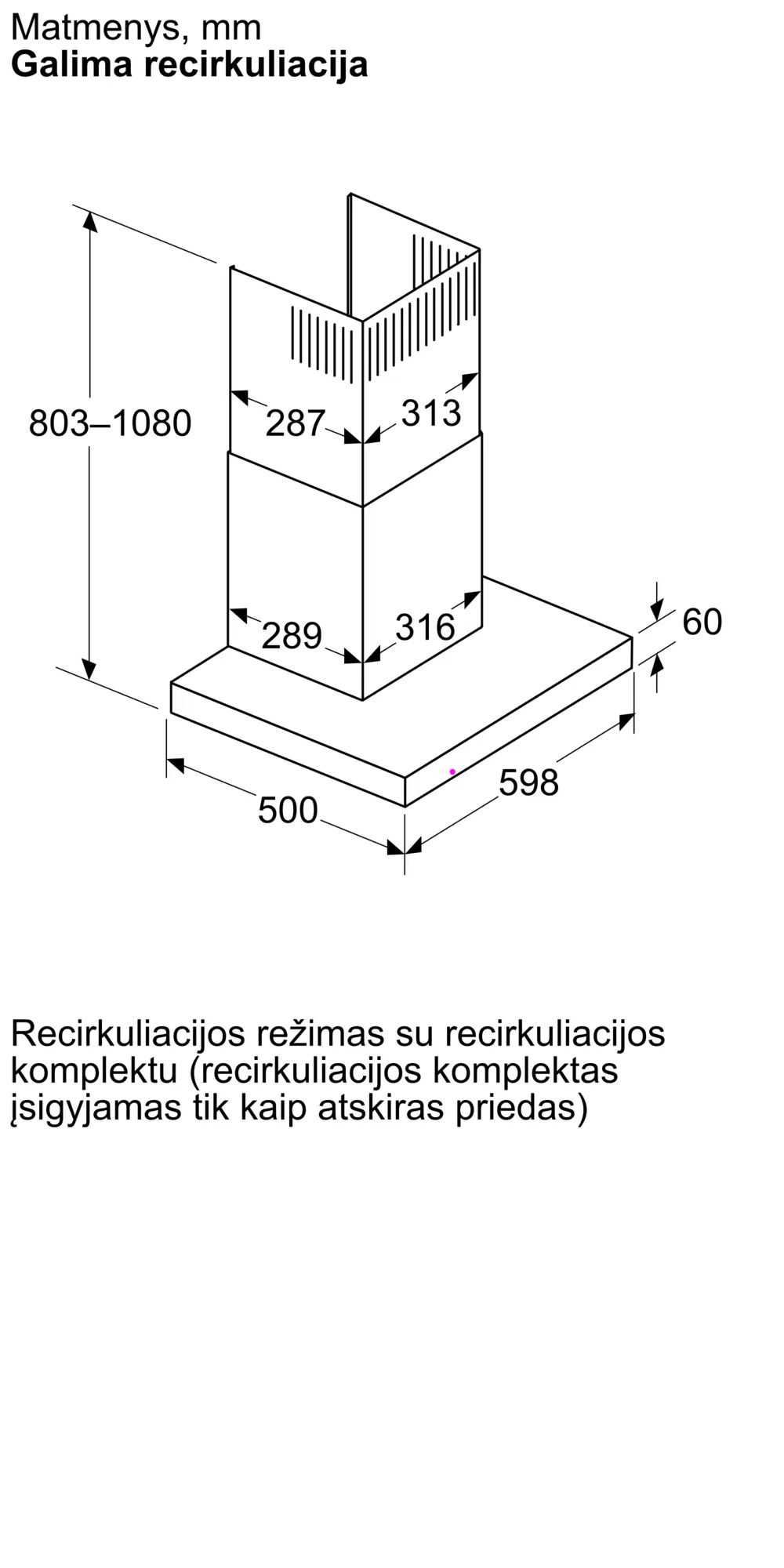 Serija 4 Prie sienos montuojamas gartraukis 60 cm Matinė juodaDWB65CC60