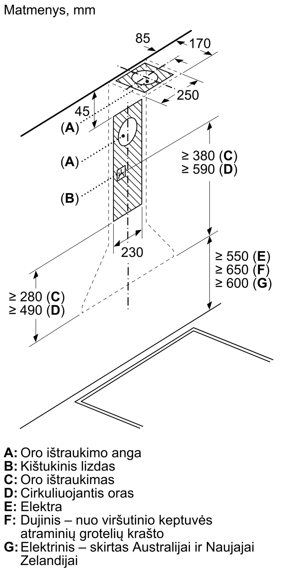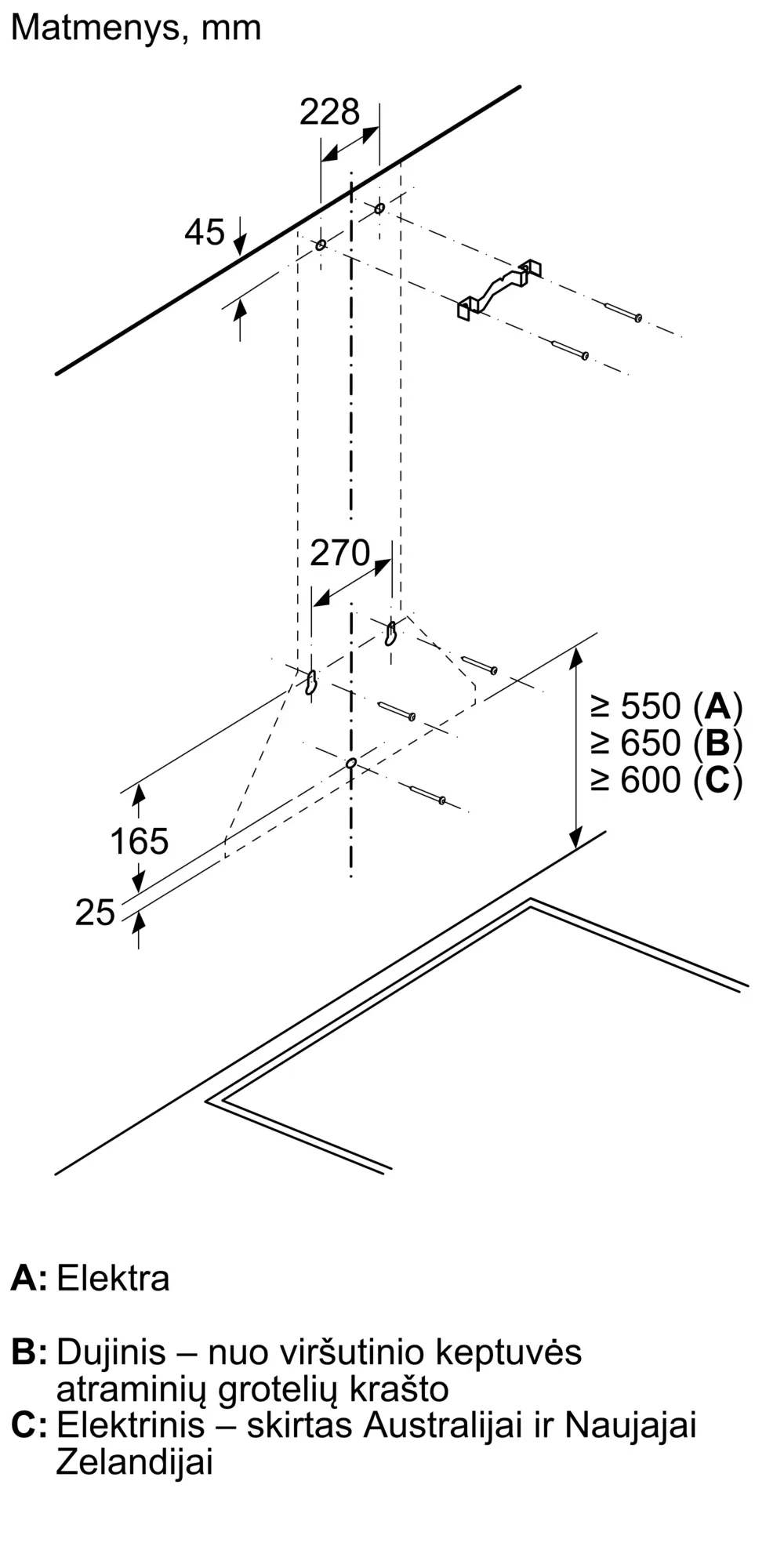Serija 2 Prie sienos montuojamas gartraukis 60 cm Nerūdijančio plienoDWP64BC50