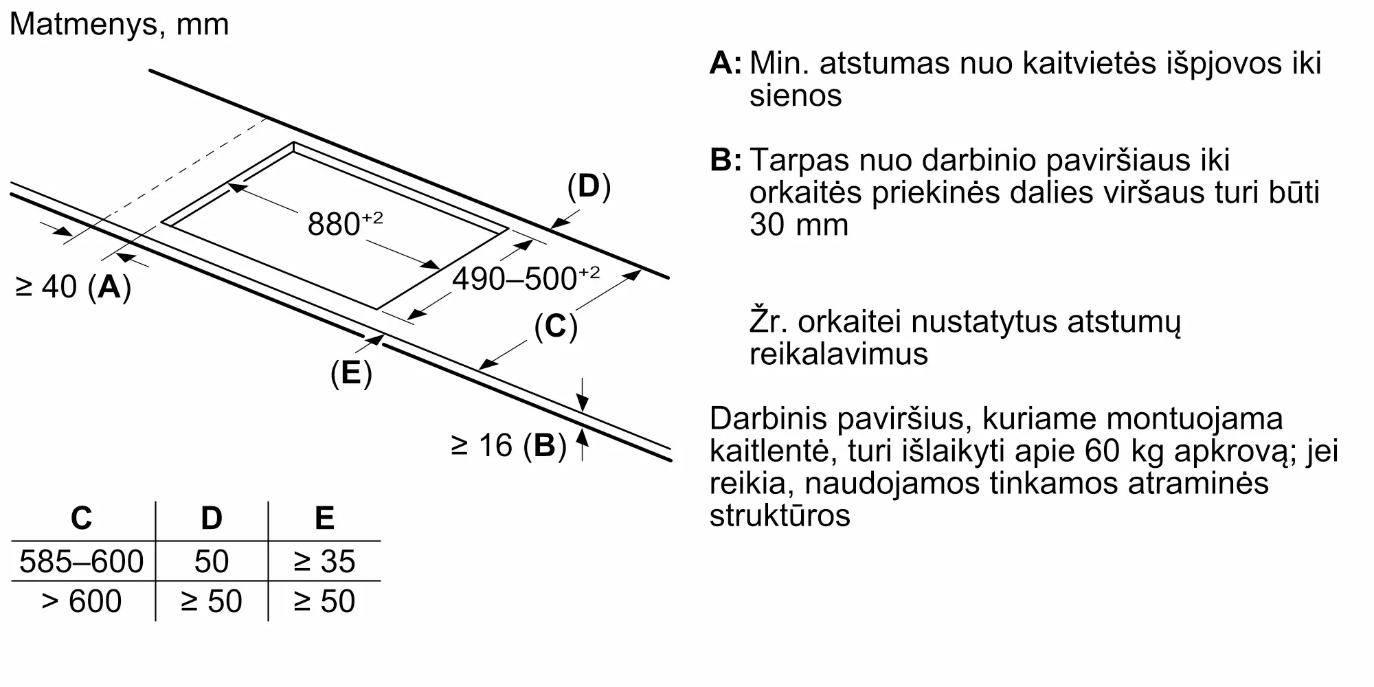 Gaminio išmatavimai