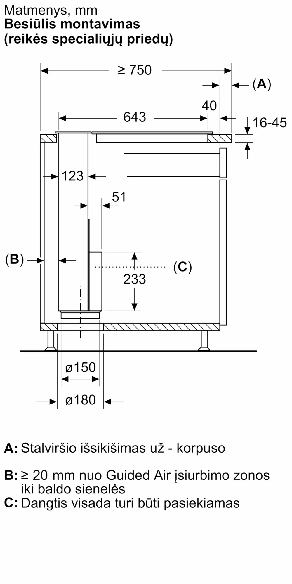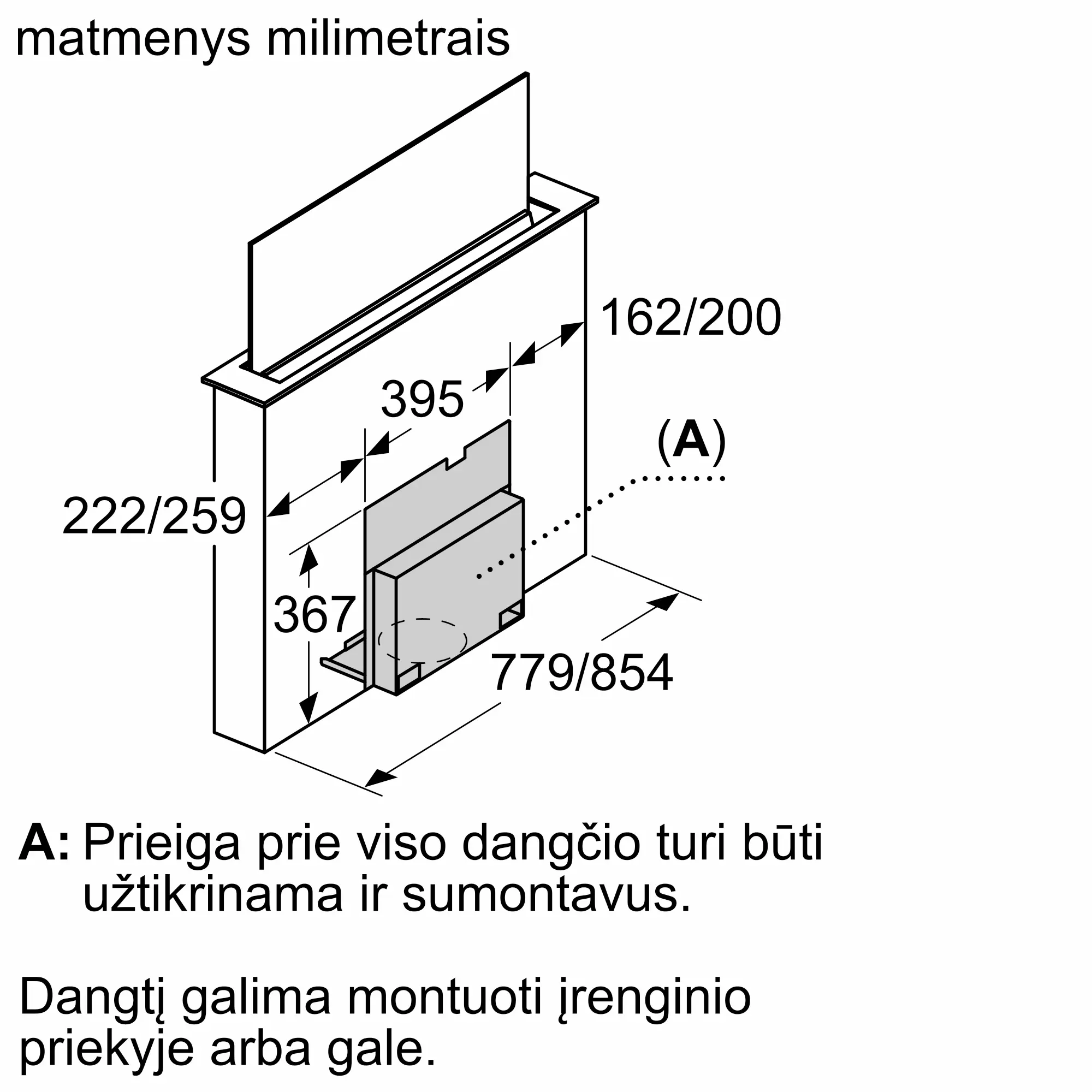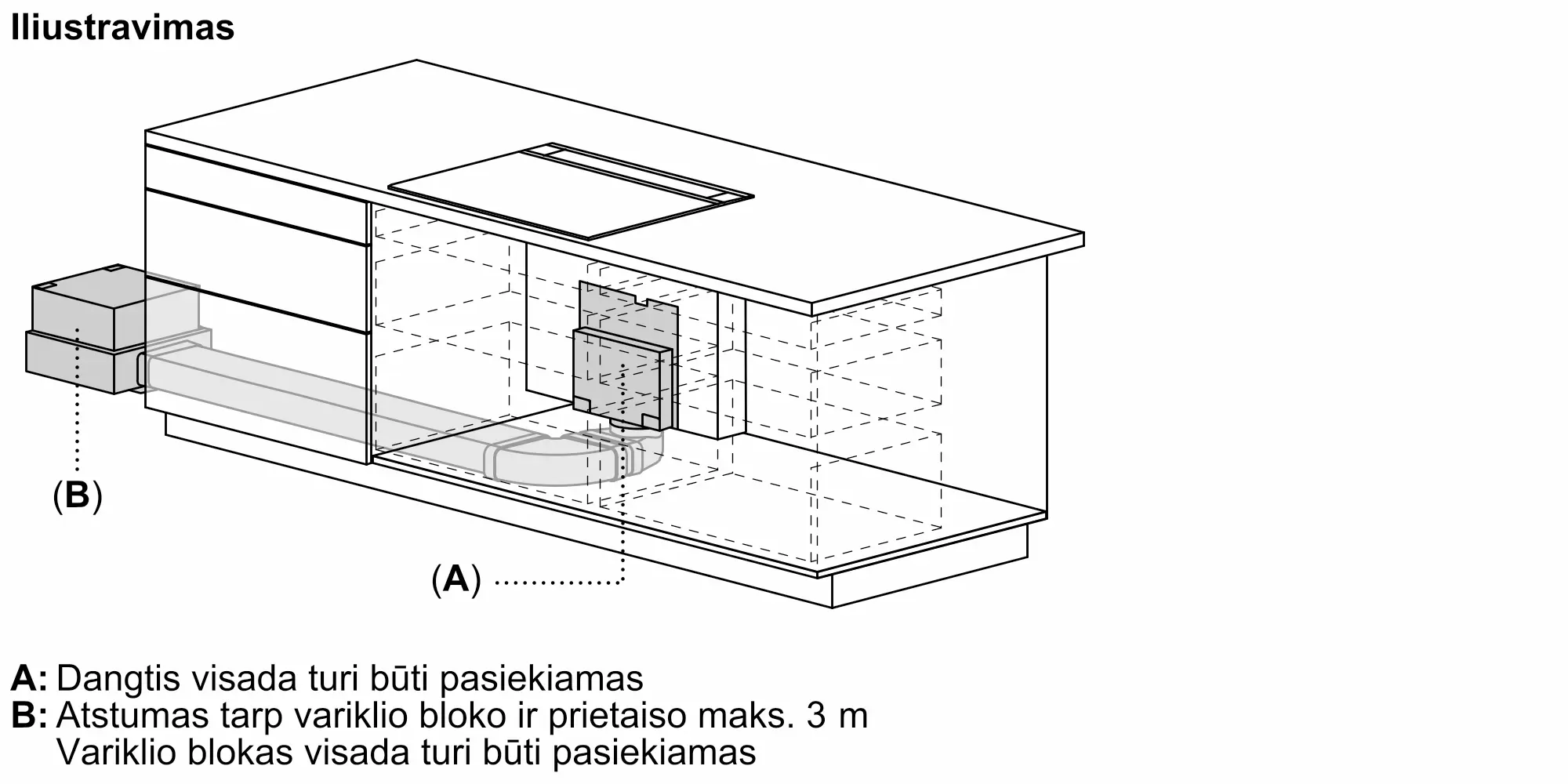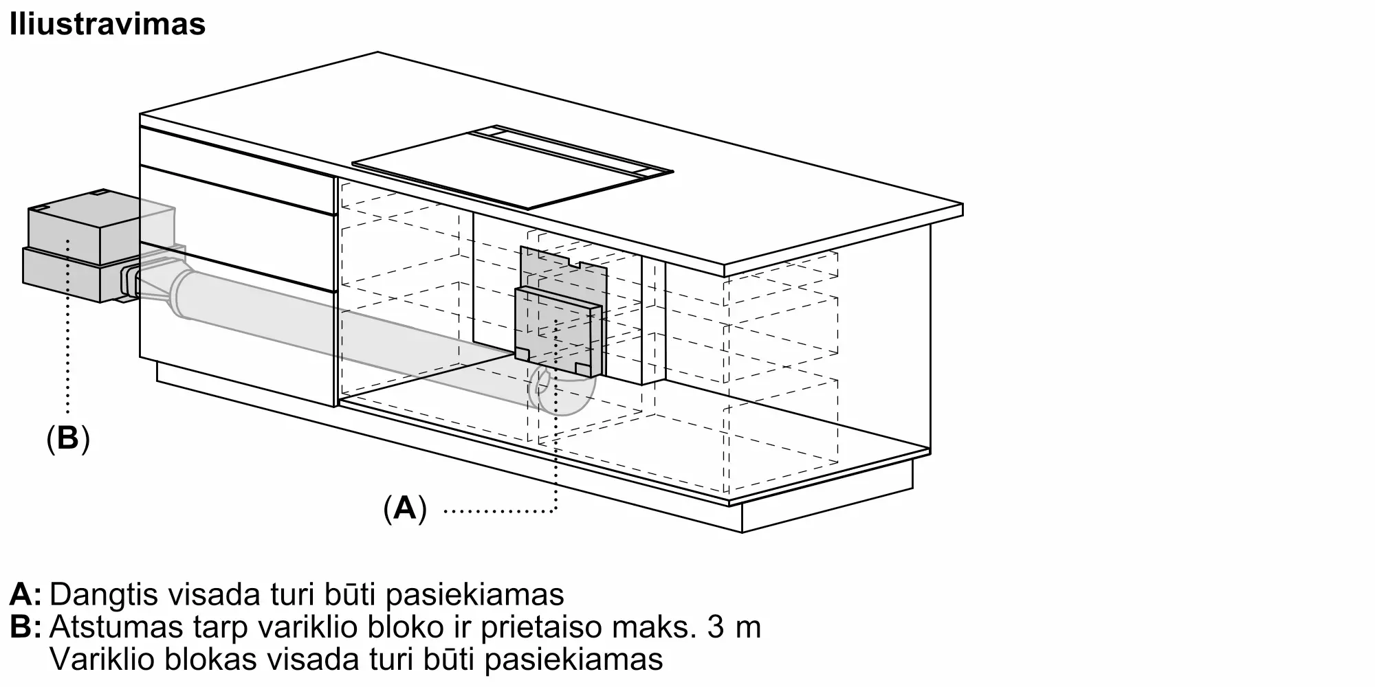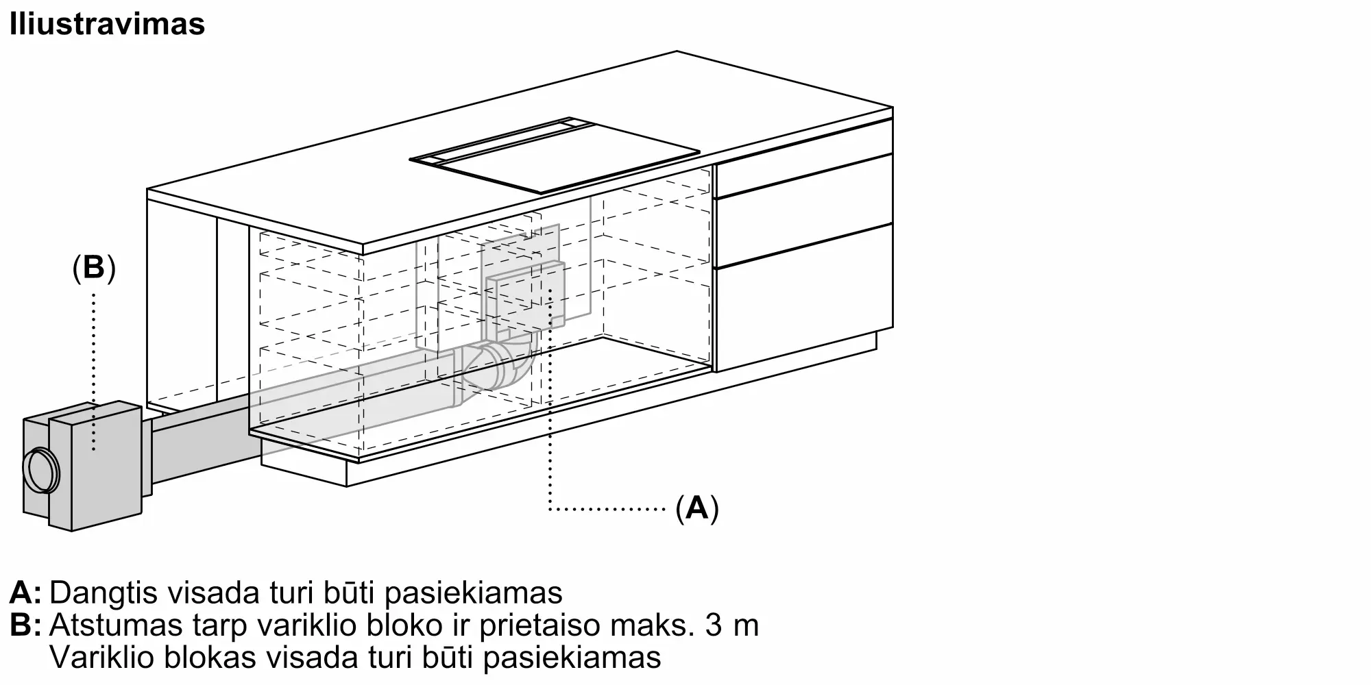 Įeina būtini montavimo komponentai, skirti varikliui iki 3 m atstumu nuo ventiliacijos įrenginio sumontuoti